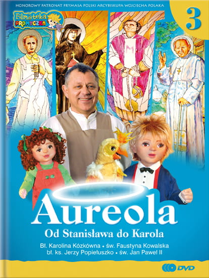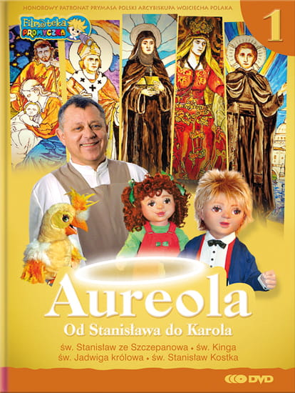 Filmy Aureola to spotkania rozśpiewanego rodzeństwa Karolinki i Piotrusia (lalki sceniczne) z zakonnikiem Nikodemem (aktorem) i maleńką papugą Mądralką (pacynka). Nasi bohaterowie spotykają się w klasztornym ogrodzie, który kryje w sobie wiele tajemnic i śladów związanych z życiem świętych. W samym środku ogrodu znajduje się „aureoloskop” z pięknymi witrażami. Aureoloskop uruchamia się, kiedy wujcio Nikodem opowiada dzieciom historię danego świętego czy błogosławionego. Prezentowane przykłady z życia świętego zwracają dzieciom uwagę na takie wartości i cnoty jak: altruizm, czystość, poświęcenie, męstwo, pobożność, hojność i wiele innych.